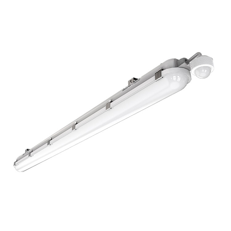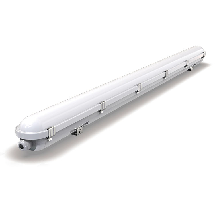 Alternativene for LED Tri-proof lysarmatur inkluderer standard 1200 mm, nødsituasjon 2W3HRS med LiFePo4-batteri, DALI2.0, 1-10V dimming og mikrobølgeovn eller PIR-sensorer. LED Tri-proof-lyset kommer med 5 års garanti.