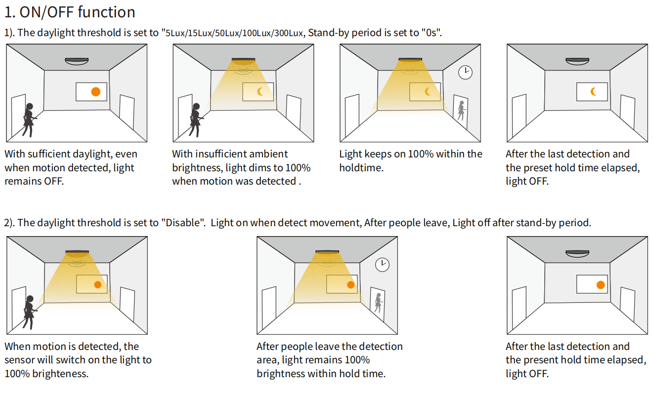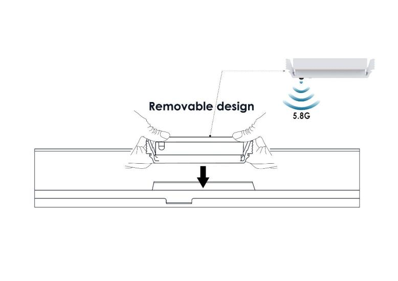 Dimmeutgang super compace lineær sensor MC004-S02ER, Dimmeutgang superkompakt lineær sensor passer til en innebygd lineær lysarmatur med tri-nivå dimmekontroll og fjernkontrollinnstillinger.