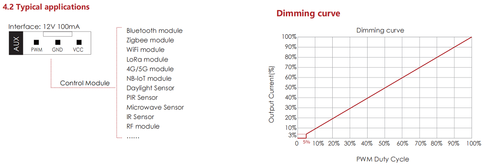 I mellomtiden støtter AUX-grensesnittet også perfekt ulike miljøoppfatninger og triggermoduler. Slik som dagslyssensor (dagslyssensor), PIR-sensor (infrarød sensor for menneskelig kropp), mikrobølgesensor (mikrobølgesensor), IR-sensor (infrarød sensor), RF-modul (radiofrekvensmodul), etc. Dette gjør at K24-strømforsyningen intelligent kan registrere endringer i lys, bevegelse av mennesker eller gjenstander, og motta spesifikke fjernkontrollinstruksjoner. Gir et solid grunnlag for å oppnå automatisert kontroll basert på miljøforhold (som smart belysning, sikkerhetskobling og energisparende strategier) eller tilpasset brukerinteraksjon.