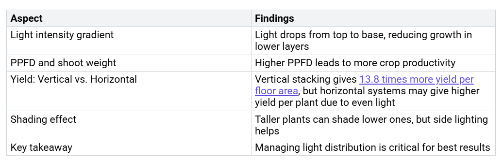 Du ser klare bevis fra vitenskapelige studier på at vertikale vekstlys kan transformere plantevekst og utbytte. Forskere har målt hvordan lysintensiteten endres fra toppen til bunnen av vertikale søyler. De fant at lavere lag ofte får mindre lys, noe som kan begrense veksten. Men når du bruker side-on eller interlighting-strategier, kan du øke lyseksponeringen for alle lag og forbedre produktiviteten.